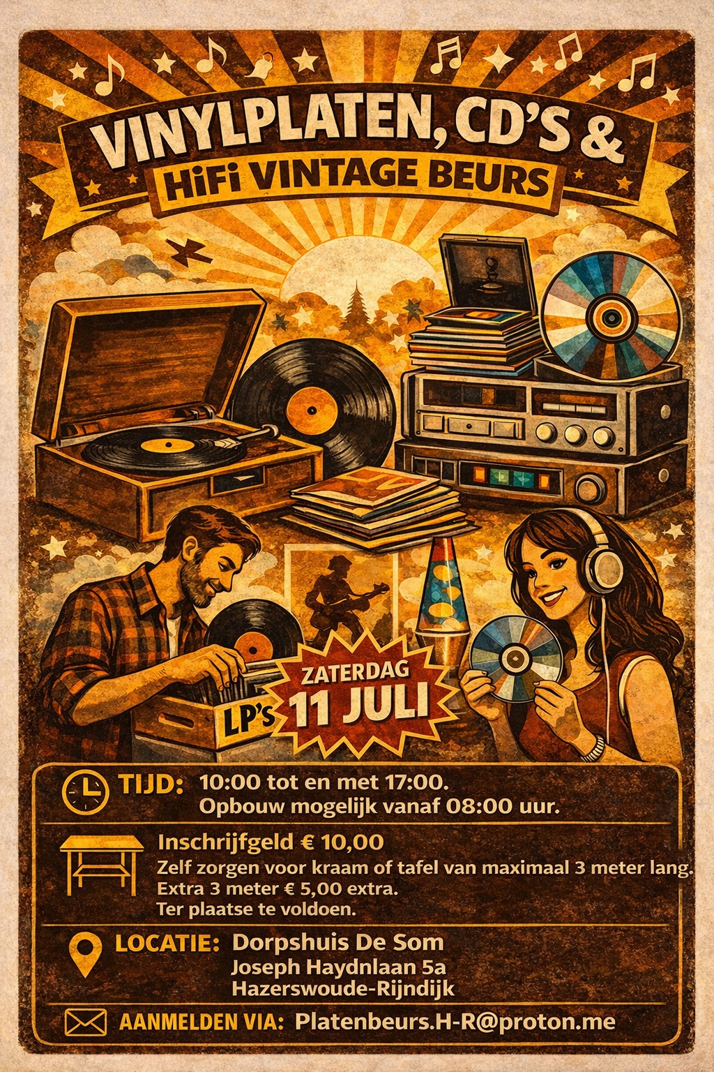 Platen, CD’s & HiFi Vintage Beurs – Hazerswoude-Rijndijk – 11 juli 2026